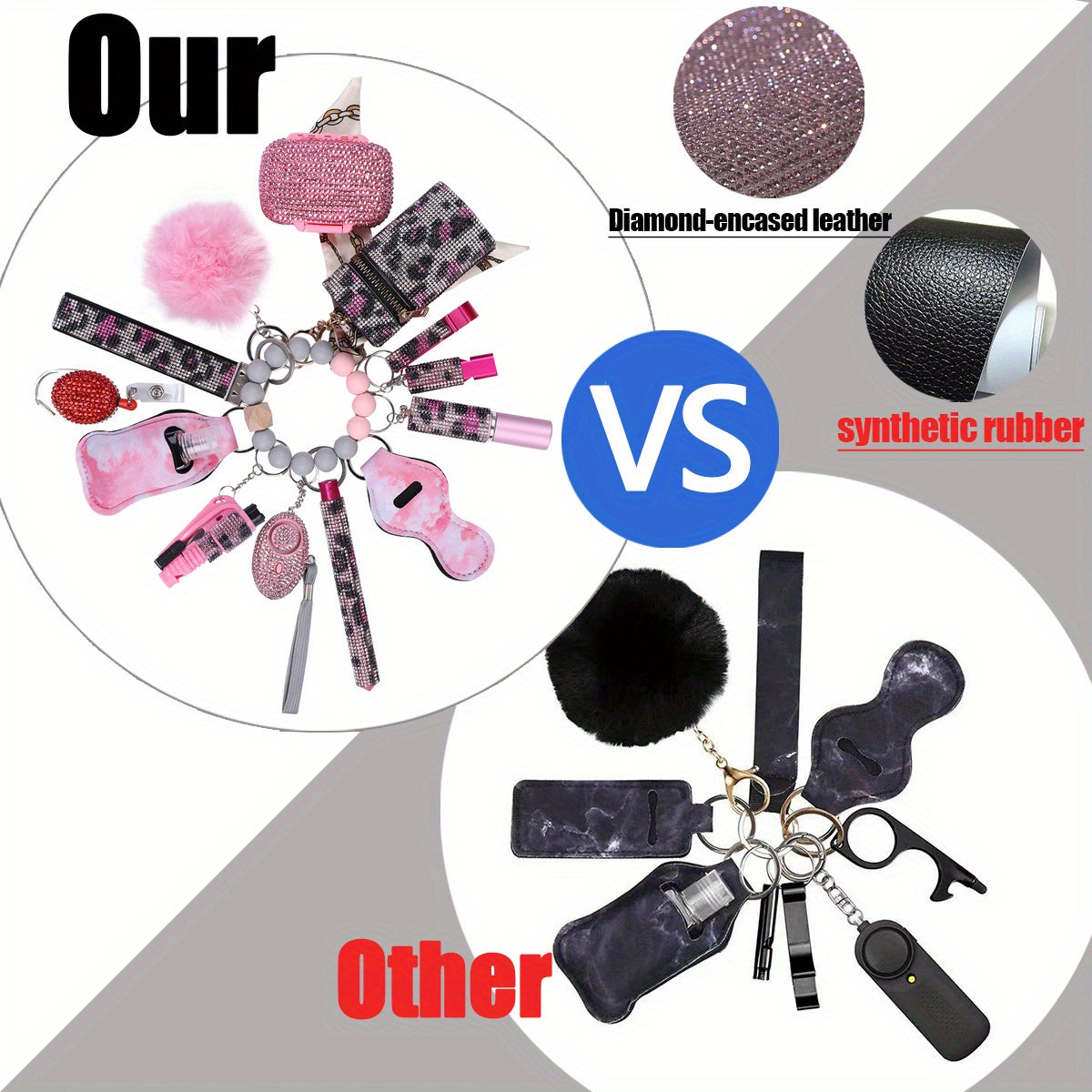 Σετ Αυτοάμυνας 14 Τεμαχίων με Στρας - Μοντέρνα Μπρελόκ για Γυναίκες με Θήκη & Pompom